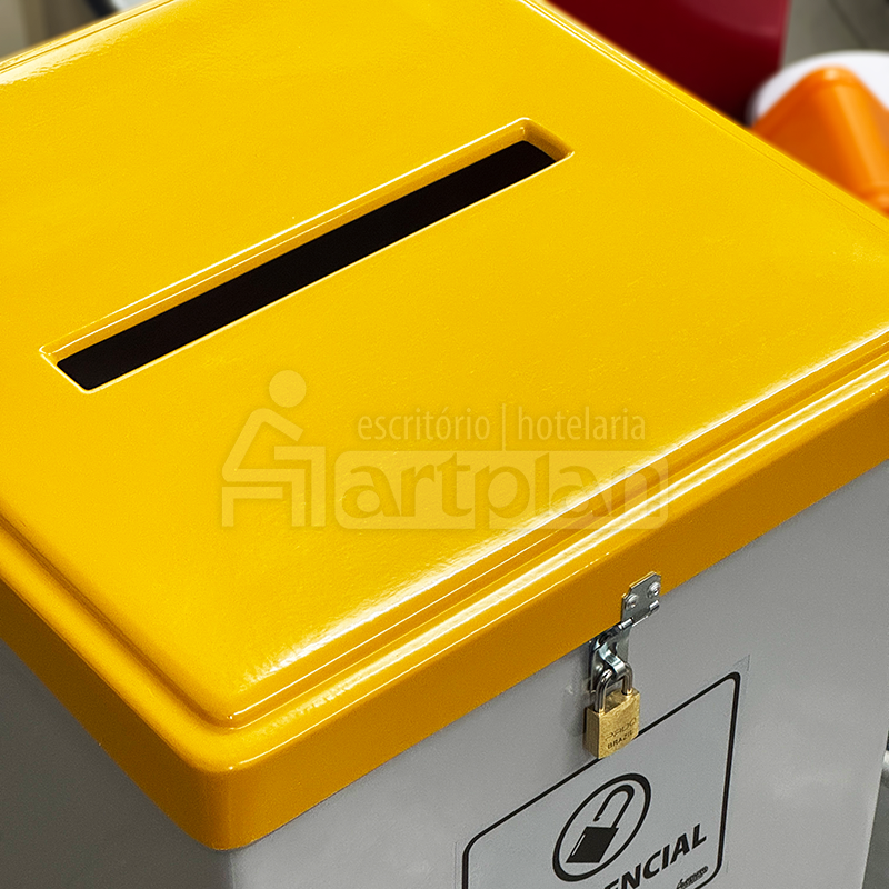 Coletor Para Documentos Confidenciais 100 Litros Com Cadeado Na Tampa e Abertura Sob Medida, Matéria prima Em Fiberglass. Diversas Cores. Confira