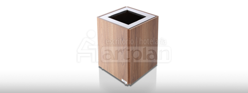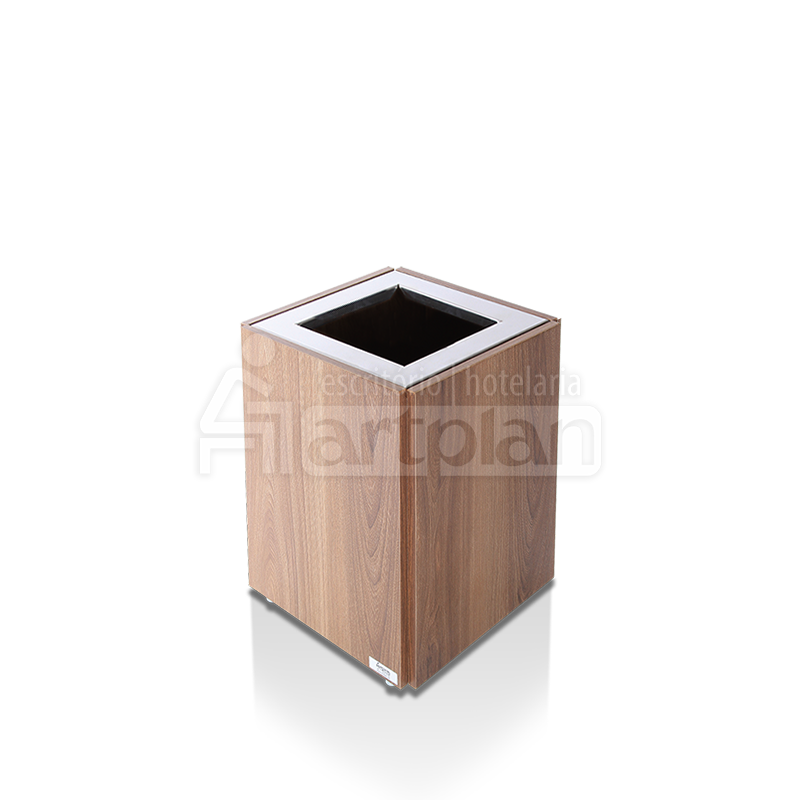 Lixeira Quadrada 25 Litros com Corpo em MDF e Aro Vazado em Aço Inox. Ideal para Coleta Seletiva em Escritórios, Shoppings e Hotéis.
