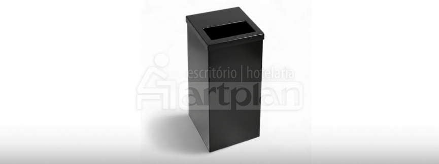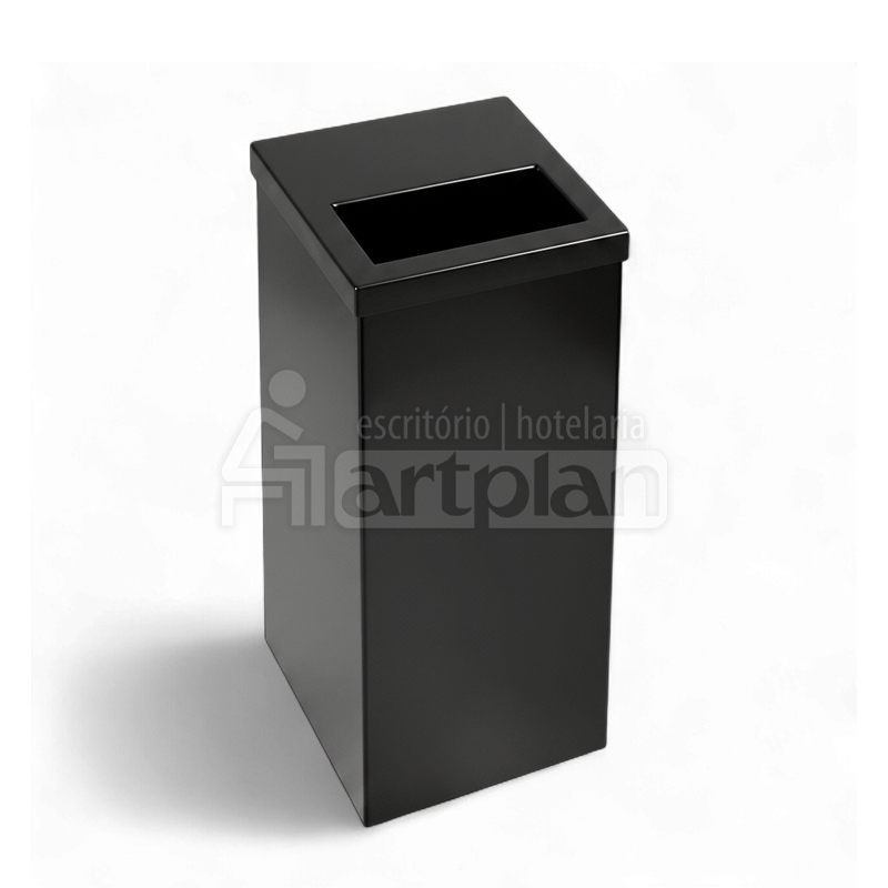 Lixeira Quadrada 50 Litros Tampa Meia Abertura Em Aço Inox Preto Fosco.