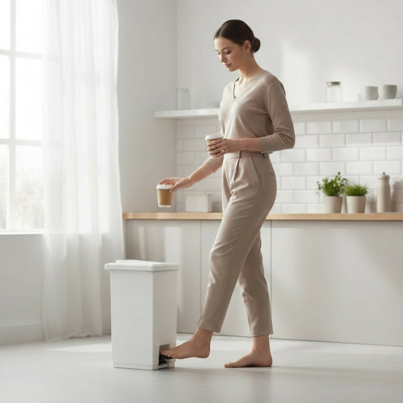 Lixeira de Plástico 25 Litros Com Acionamento por Pedal Plástico Reforçado, Estrutura Interna em Aço Carbono e Suporte Para Saco de Lixo. Ideal Para Comércio e Shoppings.